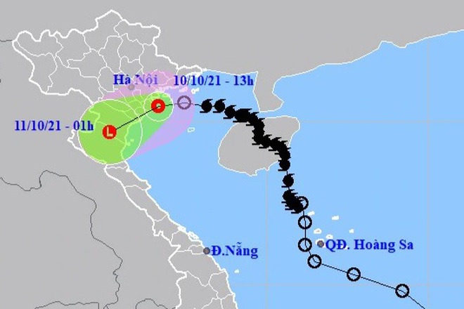 Theo Trung tâm Dự báo khí tượng thủy văn Quốc gia, hồi 13h ngày 10/10, vị trí tâm áp thấp nhiệt đới ở vào khoảng 20,5 độ Vĩ Bắc; 106,7 độ Kinh Đông, ngay trên vùng biển từ Hải Phòng đến Nam Định. Sức gió mạnh nhất vùng gần tâm áp thấp nhiệt đới mạnh cấp 6 (40-50 km/giờ), giật cấp 8. Bán kính gió mạnh cấp 6, giật cấp 8 khoảng 50 km tính từ tâm áp thấp nhiệt đới.