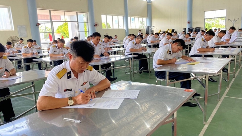 41 hải đội trưởng, đội trưởng; 40 chính trị viên hải đội, chính trị viên đội sẽ tham gia thực hành thi ở 4 nội dung, tùy thuộc vào chức trách, nhiệm vụ cụ thể. Trong đó, hải đội trưởng, đội trưởng thi các môn gồm: Công tác Tham mưu (Công tác Tham mưu tác chiến; Công tác Tham mưu huấn luyện; chuyên ngành Hàng hải; chuyên ngành vũ khí; điều lệnh, Thể dục thể thao; bắn súng K54); Công tác Đảng, Công tác Chính trị; Công tác Hậu cần; Công tác Kỹ thuật.