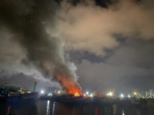 Cháy lớn tại cảng cá Quy Nhơn, 4 tàu cá bị thiêu rụi