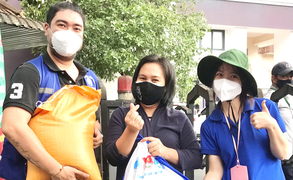 Tình nguyện viên chương trình tìm và trao quà tận tay người nước ngoài sống tại TP.HCM chịu ảnh hưởng vì dịch bệnh – Ảnh: Q.L.
