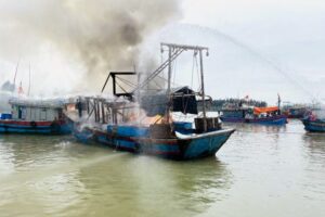 Sầm Sơn: Tàu cá bị bốc cháy dữ dội tại âu thuyền